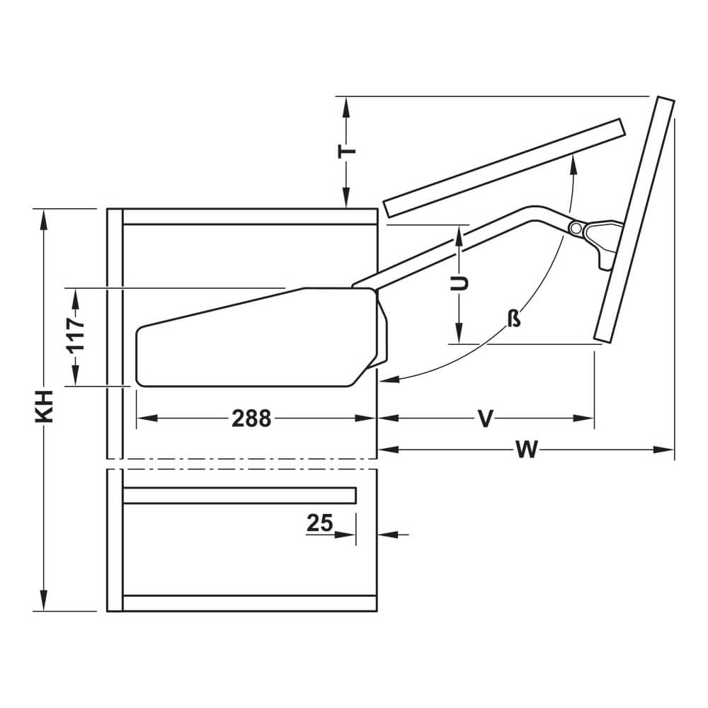 HÄFELE Hochfaltbeschlag Free Fold/Korpustiefe ab 288 /H 520-590/ 4,8-9,8 kg