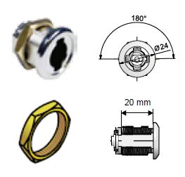 ohne P2 Wechselkern (Zylinderkern) / ohne Riegel / Schließweg 180°/ (GL20) Gesamtlänge 20 / Mutterbefestigung