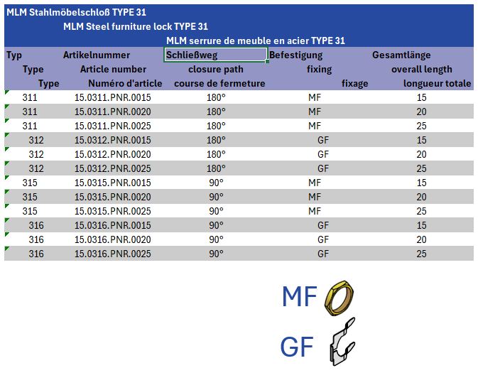 MLM LEHMANN STAHLMÖBELSCHLÖSSER TYPE 31