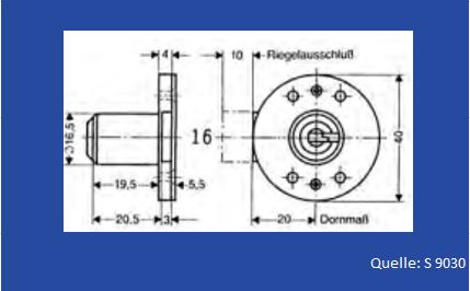 Dornmaß 20 mm, rechts und links, Zylinderdurchmesser 16,5mm, Zylinderlänge 19,5 mm, Schließkreis D-2D, gleichschließend 2D1