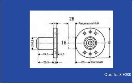 Dornmaß 20 mm, rechts und links, Zylinderdurchmesser 16,5mm, Zylinderlänge 19,5 mm, Schließkreis D-2D, verschiedenschließend von 2D1 bis 2D204