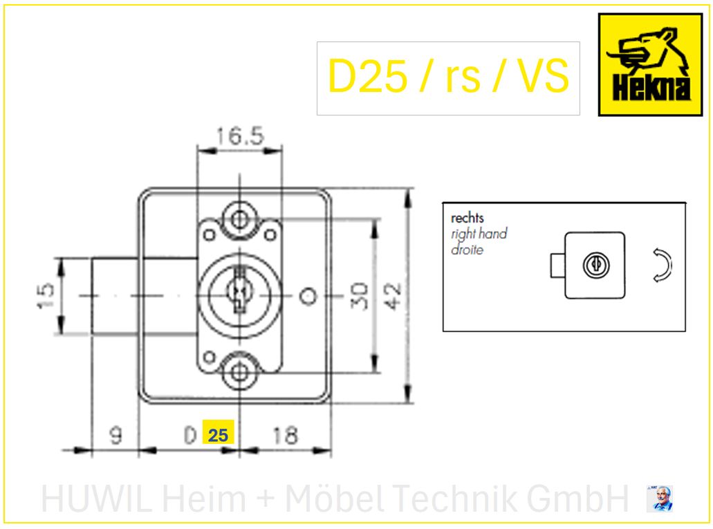 HEKNA Aufschraubschloss 1275 Typ 201 [W9] - D25 / rs / VS