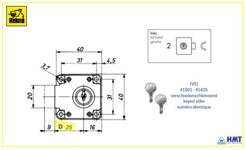 HEKNA Aufschraubschloss 1280 Typ 203 [W9] - D25 / ls / VS