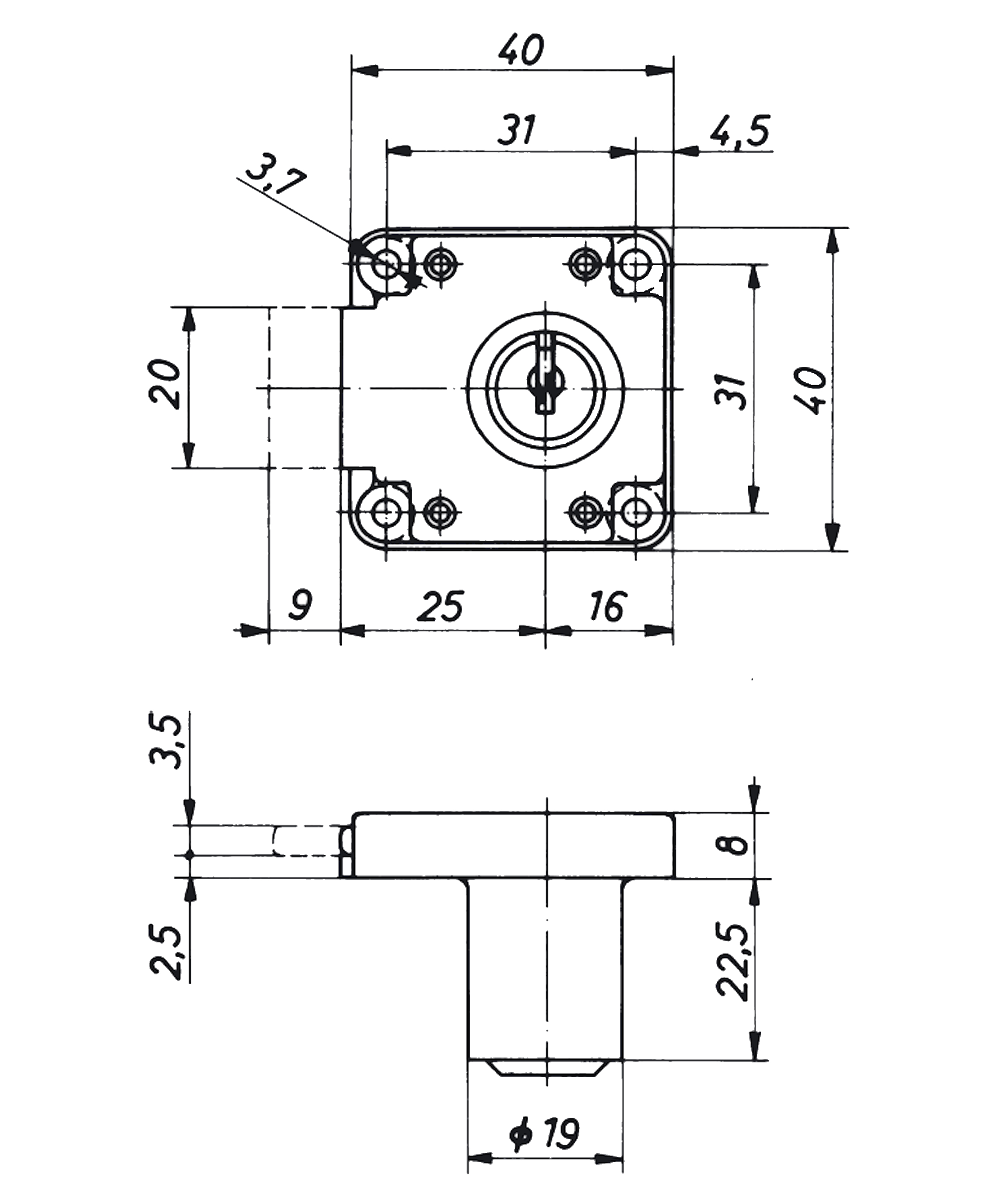 | ZYLINDER- MASSE: | Zylinderlänge 22,5 mm , Ø 19 mm |