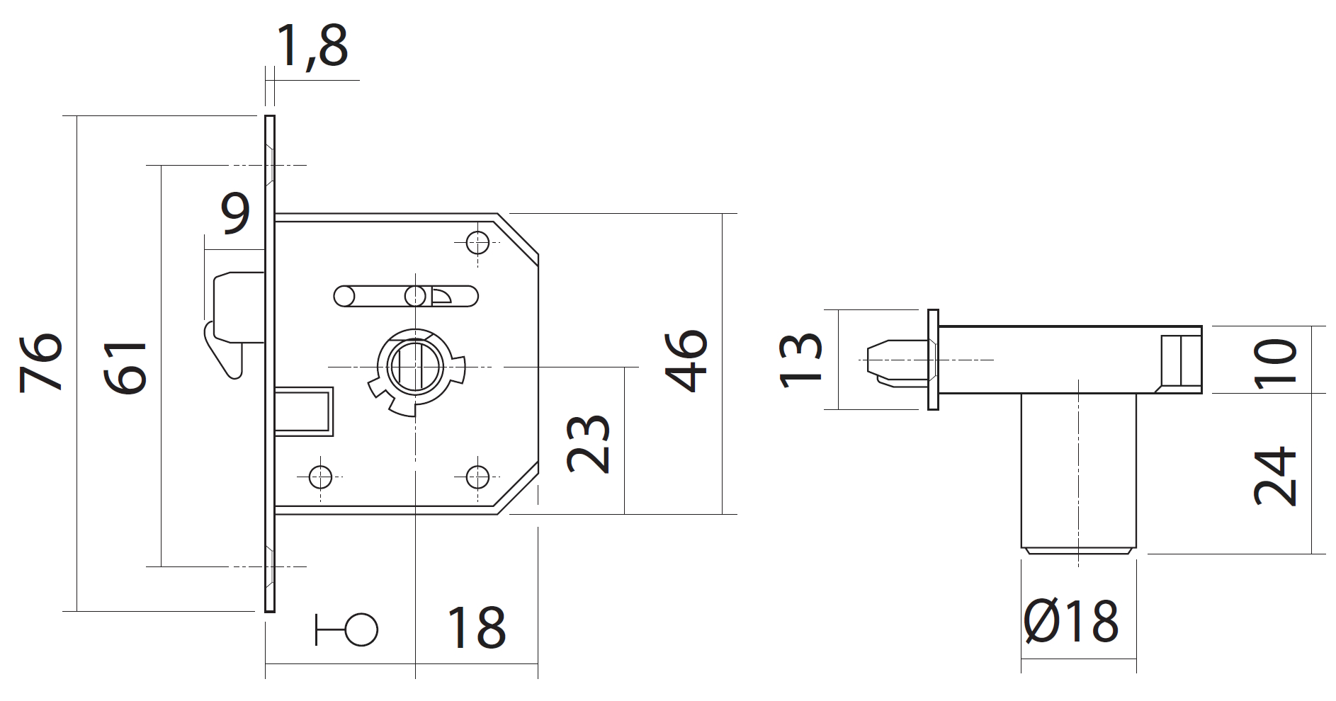 HUWIL Einsteck-Hakenriegelschloss Typ 0170 für VCS18 Wechselkern, Stulpe 76x13mm