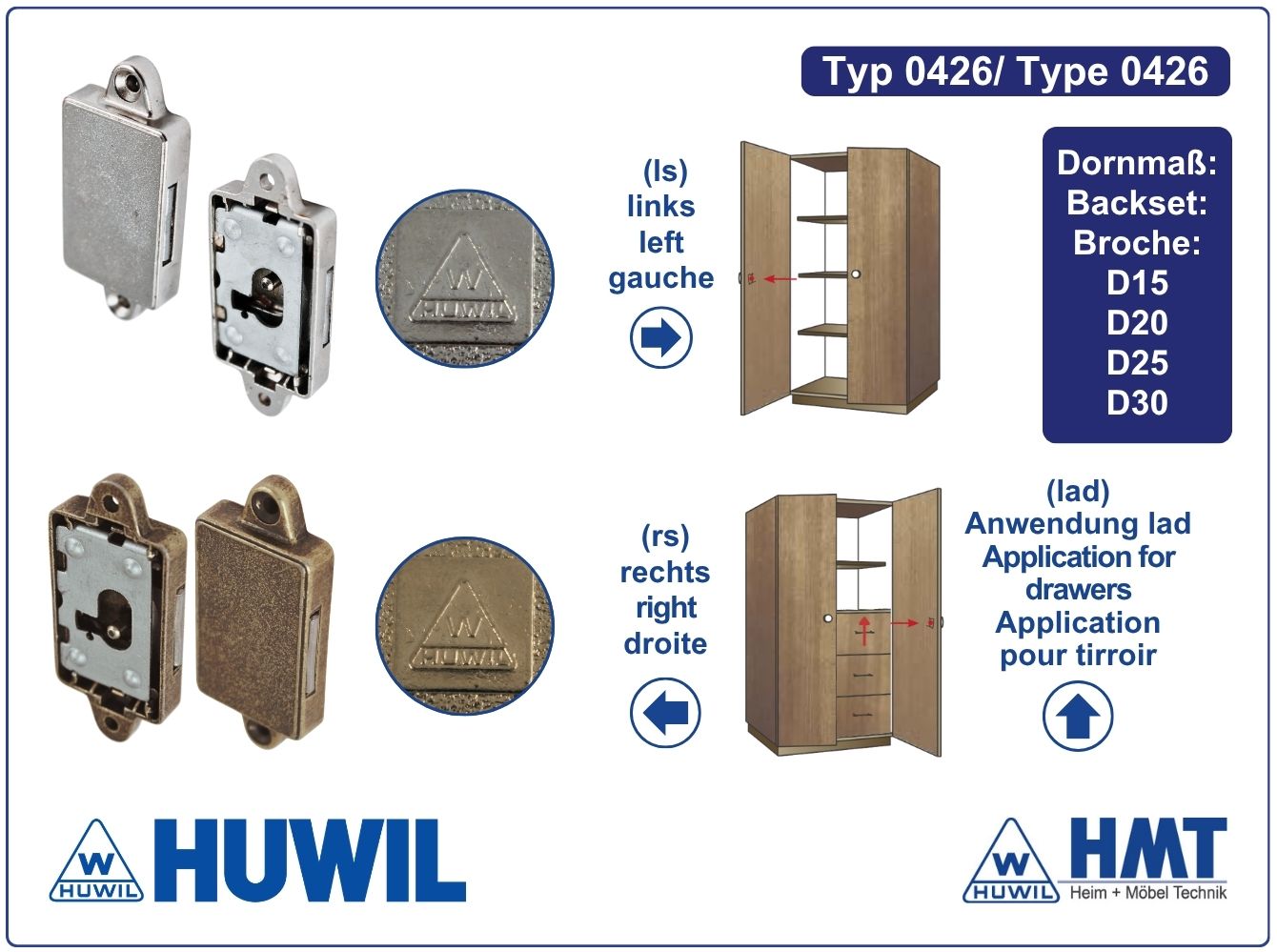 HUWIL Schloss Typ 0426 [B] - D15 / rs + lad