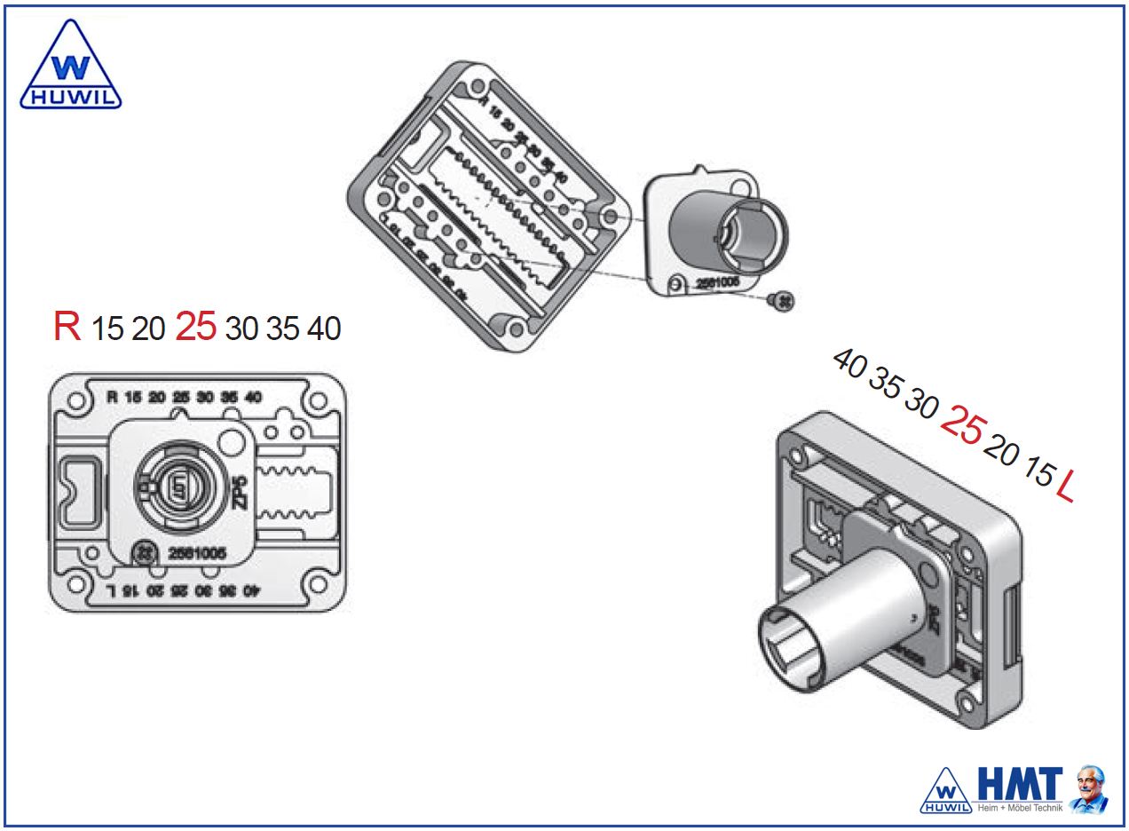 HUWIL Kastenschloss Typ 660 VCS18 Ø18mm [ZL27,5] - D15 bis D40 / rs + ls