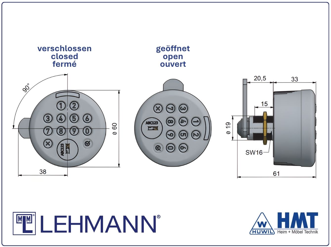 MLM Lehmann Elektronisches Drehknopfschloss GIRO TA - free code / fix code