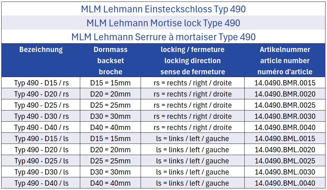 | SCHLOSS TYP: | MLM Lehmann Typ 490 |